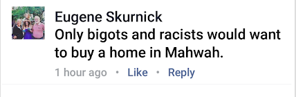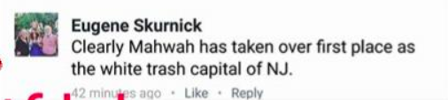 Mr. Musco was referring to posts by Ex-Englewood City Councilman Eugene Skurnick, a social media friend of Mayor Laforet, who has referred to Mahwah as the “white trash capital of New Jersey,” said that “only bigots and racists” would want to buy homes in the town and has even compared Mahwah council members to Adolf Hitler.