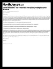 Letter: Residents fear retaliation for signing the recall petition in Mahwah Thursday, July 23, 2015Publication: NorthJersey.comLink (Dead): The publication has removed the original article. Please read the archival PDF below instead.