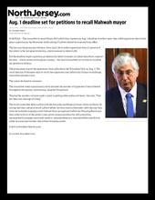 Aug. 1 deadline set for petitions to recall Mahwah mayor Monday, July 20, 2015Publication: NorthJersey.comLink (Dead): The publication has removed the original article. Please read the archival PDF below instead.