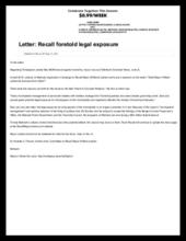 Letter: Recall foretold legal exposure Thursday, September 15, 2016Publication: NorthJersey.comLink: http://www.northjersey.com/story/news/bergen/mahwah/2016/09/15/letter-recall-foretold-legal-exposure/92908624/